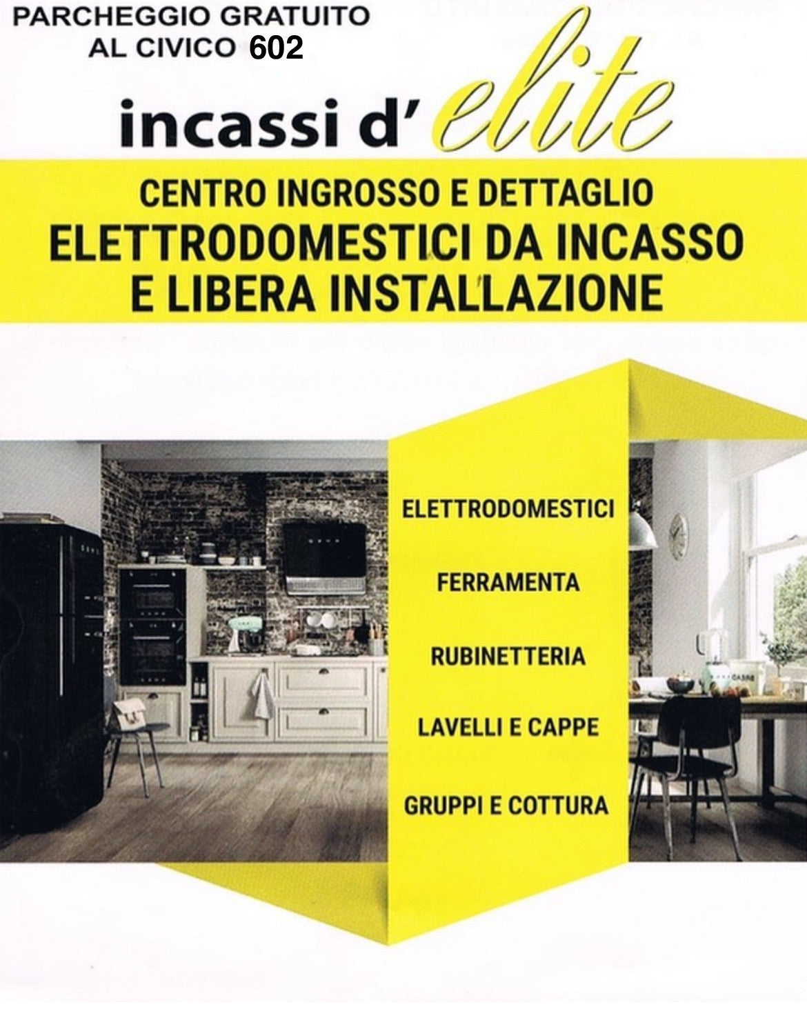 La Incassi d'elite è un'azienda leader che opera dal 2008 nel settore degli elettrodomestici nella zona collinare del Vomero. La nostra missione è quella di soddisfare nel migliore dei modi la nostra clientela, attraverso maggiori contatti di assistenza e offrire una maggiore qualità del prodotto stesso. La incassi d'elite si occupa di curare i minimi dettagli della tua cucina, in quanto siamo rivenditori autorizzati di Smeg, Franke, Miele, Bosh, Siemens, AEG, Ilve, Steel, Samsung, Shock, La Germania, Sharp, Electrolux, Indesit, Hotpoint, Whirlpool, Telma, Beko, Elica, Falmec, Neox, Schaub lorenz, Severin. Puoi venirci a trovare in sede in Via Gabriele Jannelli 492, Napoli (Vomero), o contattrci al numero fisso 0817703878 o al numero cellulare 3283426012, dove sarà disponibile anche il servizio whatsapp.